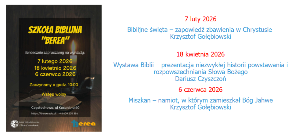 Kursy, jakie proponujemy, przeznaczone są dla osób, które rozpoczynają osobiste poznawanie Pisma Świętego i naszego Pana oraz dla każdego, kto pragnie uporządkować posiadaną wiedzę z Bożego Słowa. Chcemy szczególnie pomóc tym, którzy w zamęcie obecnym wokół nas pragną oprzeć się na pewnym fundamencie i rozpocząć proces przemiany, który dzięki Bożej łasce nadaje prawdziwy sens życiu. Jeżeli należysz do takich osób, to zachęcamy do zarejestrowania się i rozpoczęcia tej fascynującej podróży.